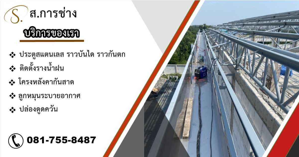 ช่างทำประตูสแตนเลส ราวบันไดสแตนเลส ราวกันตก รับติดตั้งและทำรางน้ำฝน ปล่องดูดควัน ลูกหมุนระบายอากาศ ประตูรั้ว หลังคาโพลี ราวบันได ของใช้ต่างๆที่ทำด้วยสังกะสี สแตนเลสทุกชนิด